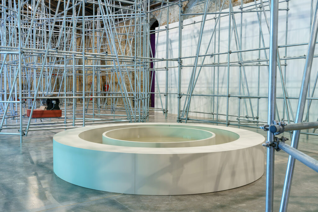 These unique walls will act as musical instruments during performances activated throughout the Biennale. During quiet times, however, they will become speakers for a collection of stored sounds and tracks composed by the artist during artistic residencies. The project includes a dynamic artist residency, featuring collaborations with four emerging talents of various nationalities: Spanish musician and performer Bella Báguena, French transdisciplinary artist Célin Jiang, Turkish artist Selin Davasse, and Swedish Stina Fors. This synergy will periodically transform the pavilion into an artistic creation lab, exploring new sound frontiers.