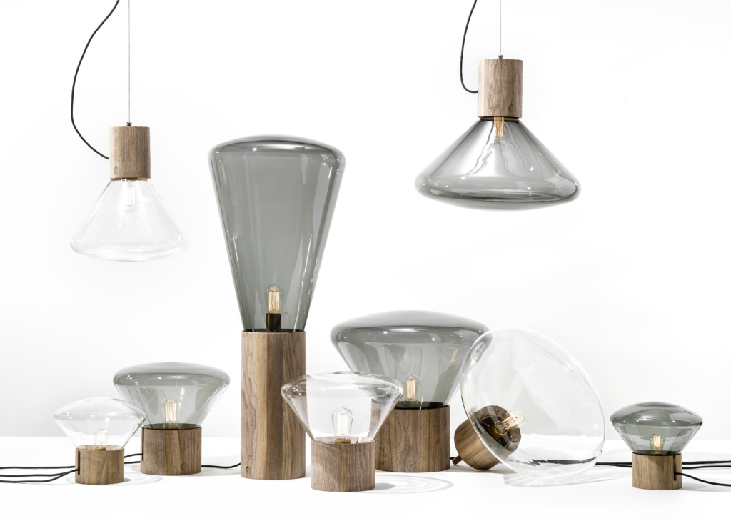 You have many product collections developed by international designers, where different materials (leather, ropes, woods, metals) are skillfully paired with glass without ever overshadowing the light. How is a Brokis product born?