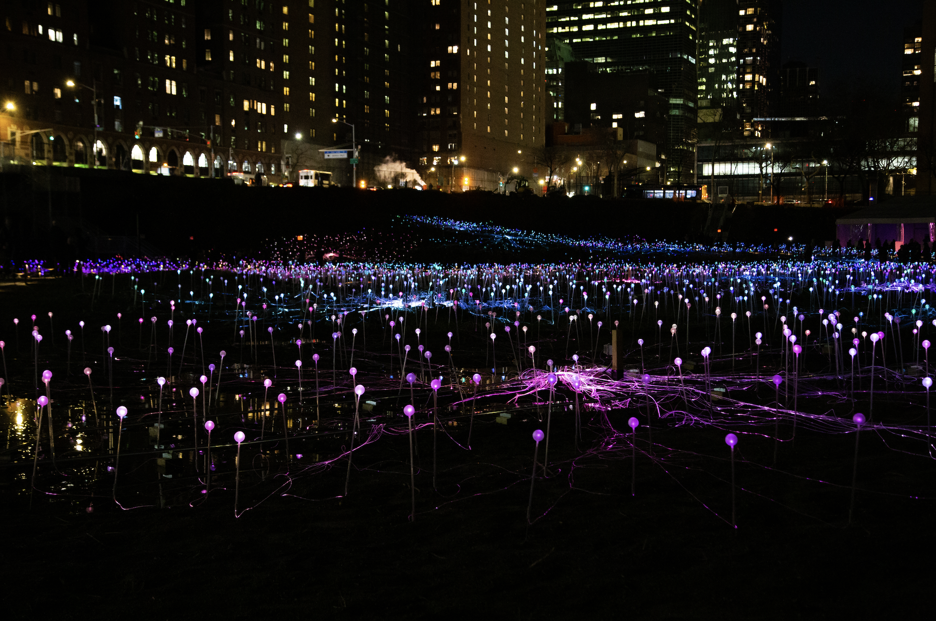 The magical light field by British artist Bruce Munro illuminates Manhattan nights