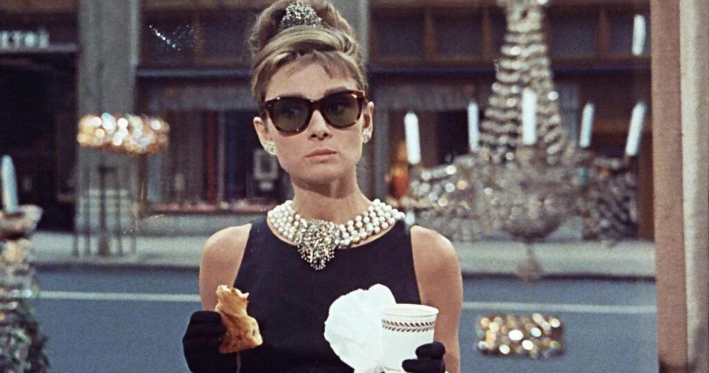 In one of the iconic scenes from Blake Edwards’ Breakfast at Tiffany’s, where Holly Golightly, portrayed by Audrey Hepburn, pauses with coffee and croissant in front of Tiffany’s window, a chandelier is reflected in the background mirror. Though made of glass, this chandelier shines with a brilliance similar to the jewels Holly admires daily on 5th Avenue, jewels she can never afford.
