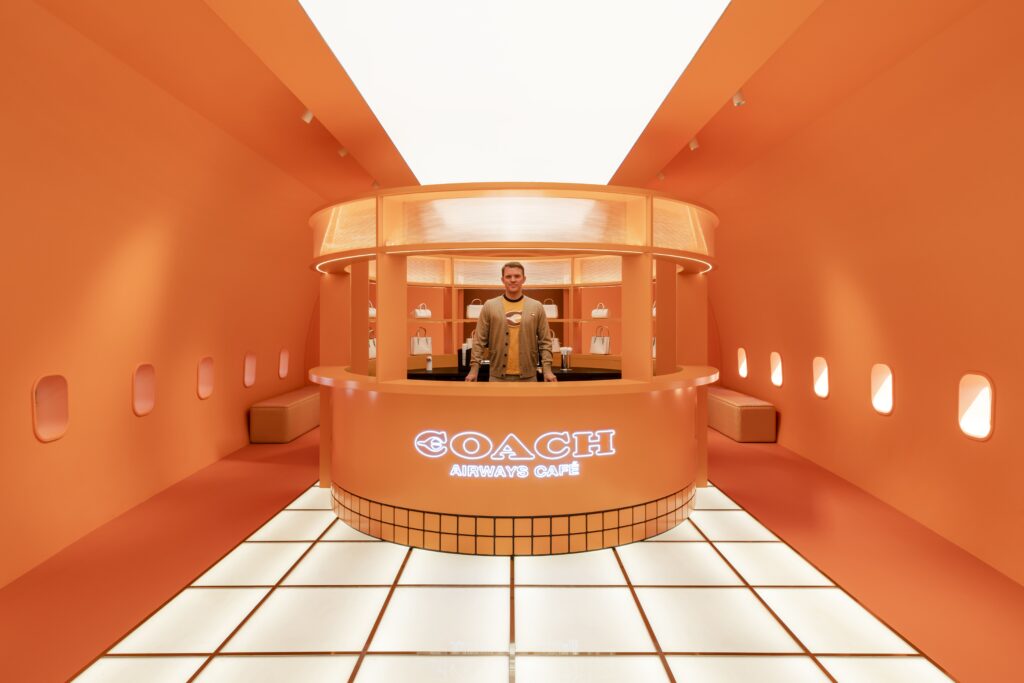 Coach Airways offers a unique experience to its visitors: an experiential journey featuring a store and café inside a Boeing 747 Jumbo Jet.