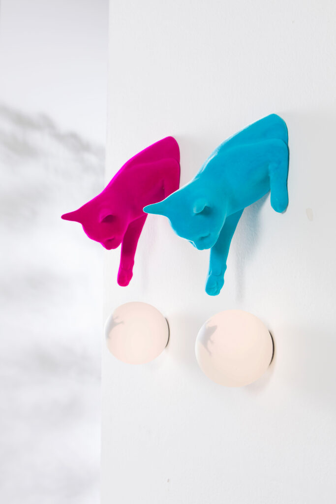 The animal world also serves as inspiration: designed by Matteo Ugolini for Karman, Maoo is a wall and table lamp that looks like… a cat! The collection expansion introduces three new fluorescent and pop colours – turquoise, fuchsia, and orange – with a velvet-effect coating, adding to the existing white or black versions. The product consists of two elements: a frosted glass sphere with an internal LED light source, a mouse-shaped sticker, and a ceramic cat. Perfect for wall mounting or placing on horizontal surfaces, this product is part of the Karman Zoo, a range entirely inspired by the animal world.