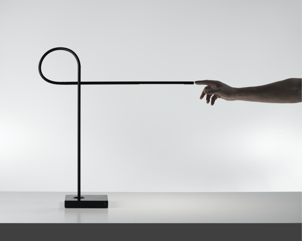 “The ribbon is a symbol of union and continuity. Light arrives at the table spontaneously, almost as a continuation of the electric cable,” says Davide Groppi, describing the new table lamp designed by Maurici Ginés for the brand. The choice of materials is particularly refined: the base is black marble, the arms are matte black painted aluminium, and connected by a black silicone tube. The central joint creates a “knot effect,” allowing for vertical orientation.