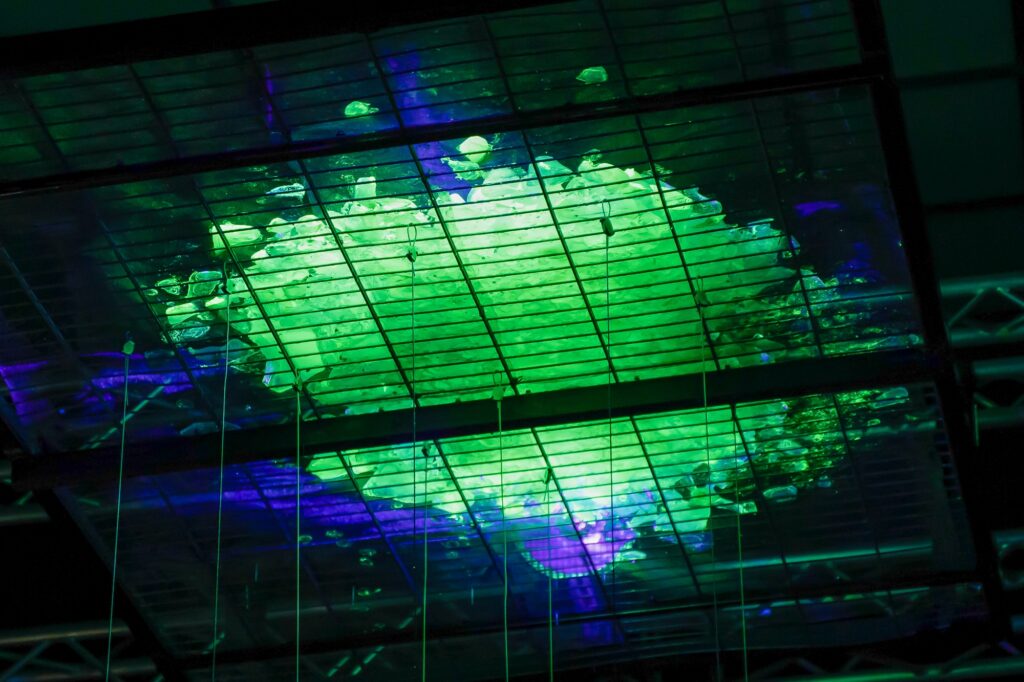 AMA-KO, crafted by Yoko Seyama Art & Scenography, is a meditative fusion of light and sound, drawing inspiration from the concept of “Raindrums”. Berlin-based multimedia artist Yoko Seyama, alongside composer Dirk P Haubrich, transports viewers to a serene realm with fluorescent melting ice drops ringing steel drums, set to the music of Louis Couperin.
