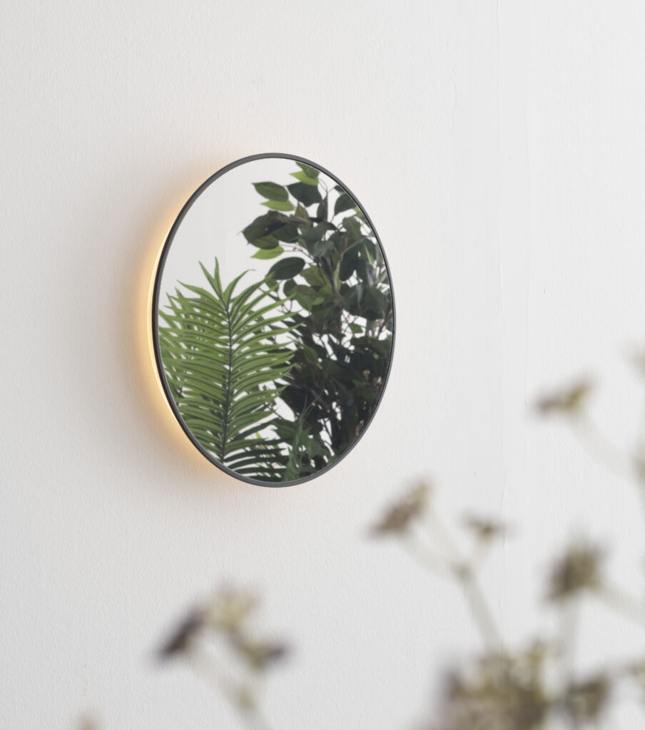 Disegnata da Carolina Gismondi de Bevilacqua e Daniele Moioli, è un’applique composta da un disco specchiato su entrambi i lati, con una luce continua posizionata lateralmente. La superficie in acciaio inox riflettente riflettente moltiplica lo spazio, e può essere orientata sull’asse verticale per creare molteplici punti di vista.