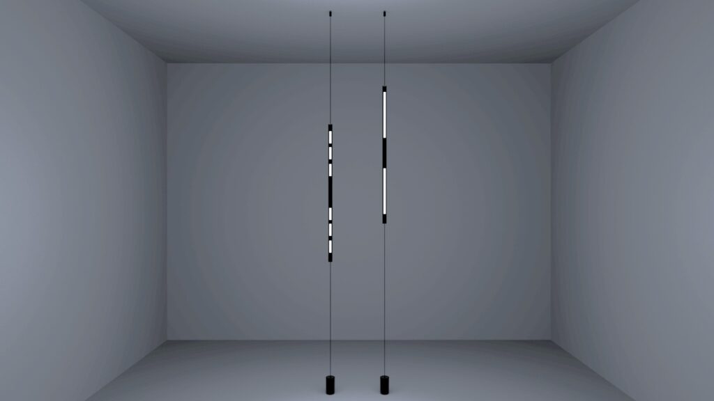 «L’idea è nata col voler dare nuova vita, un nuovo utilizzo a un comune binario elettrificato, cercando di renderlo il più possibile più svincolato e libero nello spazio. Abbiamo studiato a fondo il catalogo di A.A.G. Stucchi per non discostarci troppo da quello che già offre l’azienda, al fine di creare qualcosa che fosse il più possibile “concreto” e affine al loro stile. Siamo anche stati in sede per vedere e toccare le loro proposte. Abbiamo notato come la ricerca del brand proceda verso il minimalismo, verso una miniaturizzazione sempre maggiore delle componenti, a cui ci siamo ispirati. Concettualmente, abbiamo operato uno switch tra cavo e binario, facendo in modo che sia quest’ultimo a scorrere e riposizionarsi, non solo i corpi illuminanti che si innestano su di esso. Formalmente invece, la fonte di ispirazione principale è stata la lampada Parentesi di Achille Castiglioni e Pio Manzu, che ci ha aperto la strada verso la progettazione di Flutua. Il nome stesso descrive bene la nostra idea: ci siamo immaginati una luce che sembra galleggiare nell’ambiente tra soffitto e pavimento».