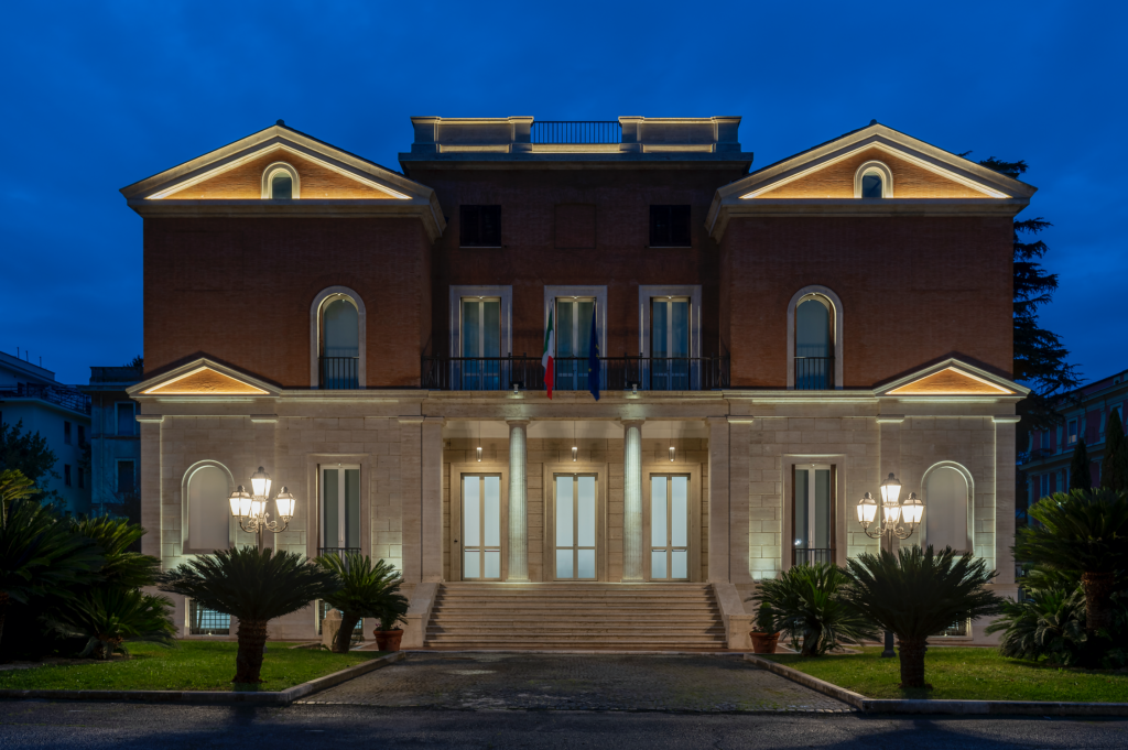 6. Illuminazione della facciata principale della villa, sede di SDA Bocconi a Roma - ph. © Moreno Maggi