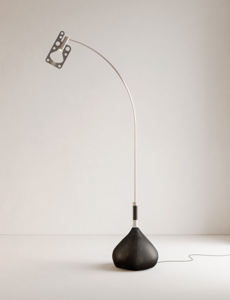 Firmata da Enzo Calabrese con Davide Groppi, questa piantana è un ready made ricavato da una canna da pesca flessibile e altissima, che ricorda anche un ramo di salice piegato dal vento. Non molto “arquata” ma di certo una buona soluzione per sostituire il punto luce a soffitto, o per illuminare un salottino all’aperto nella versione outdoor.