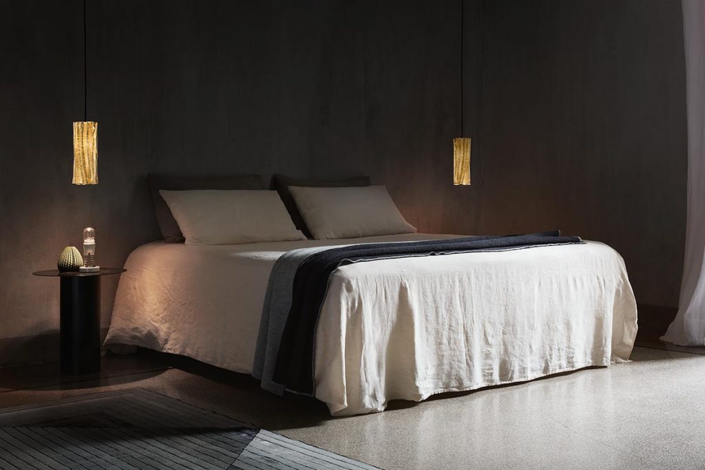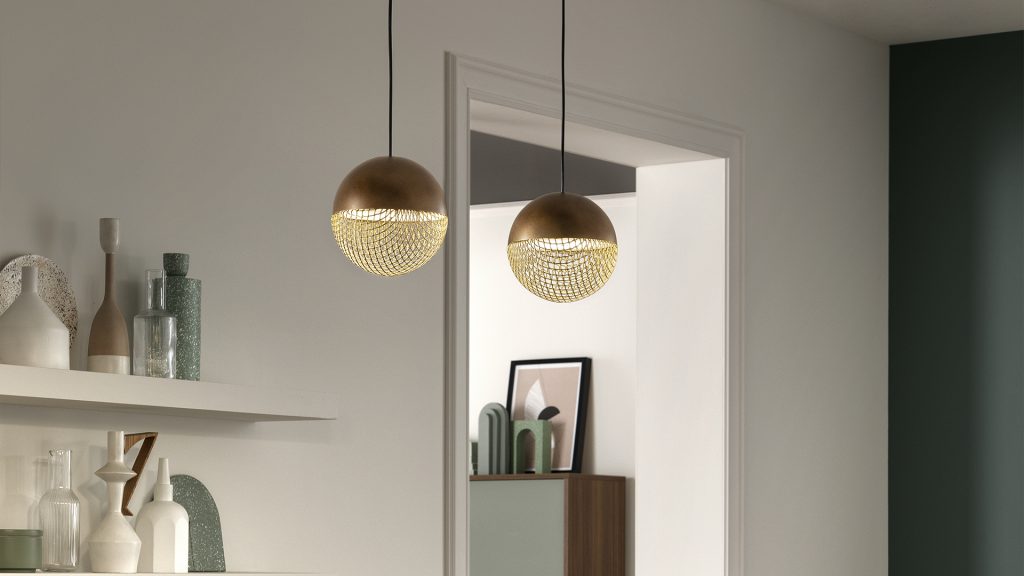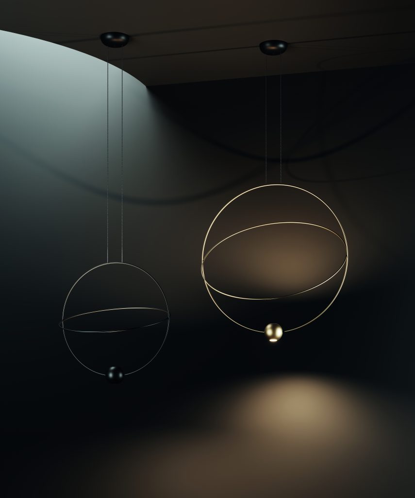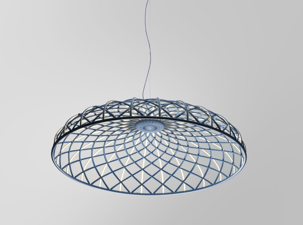 The new Skynest Suspension by Flos is a dome made from a combination of blind and luminous “cords” arranged in a mesh pattern. Designed by Dutchman Marcel Wanders, it combines an absolutely innovative shape with an environment-friendly spirit, as it is assembled without adhesives to be completely separated and recycled at the end of its life. Serena Confalonieri’s creations for Servomuto are also textiles. Presented at the last edition of Alcova during Milan’s Fuorisalone 2022, the Venus suspension lamps are made of metal and lycra, with covers that can be changed as if they were clothes. Hyper-thin, on the other hand, is Nika Zupanc’s graphic design sign to define Elara by Lodes, a slender, modern chandelier that picks up with metal rings the trajectory of planets in the universe.