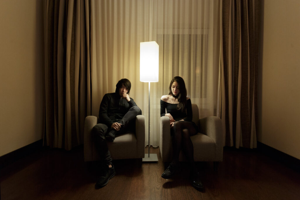 Noemi: I come from a visual background, I have loved to draw since I was a child and graduated from an art school in Paris. When I met Takami he was playing guitar in a band. Later, when he graduated in Architecture, we worked on our first project together, a painting for an entrance building in Paris. We had fun doing this project together and wanted to bring our collaboration further, mixing our full backgrounds together: visual, space, and sound. The installation format came pretty naturally to achieve that goal. In our work, we tend to have a really direct contact with the audience. We want to touch people at first sight. The lights allow us to have a really strong impact visually and the sound gives the emotions.