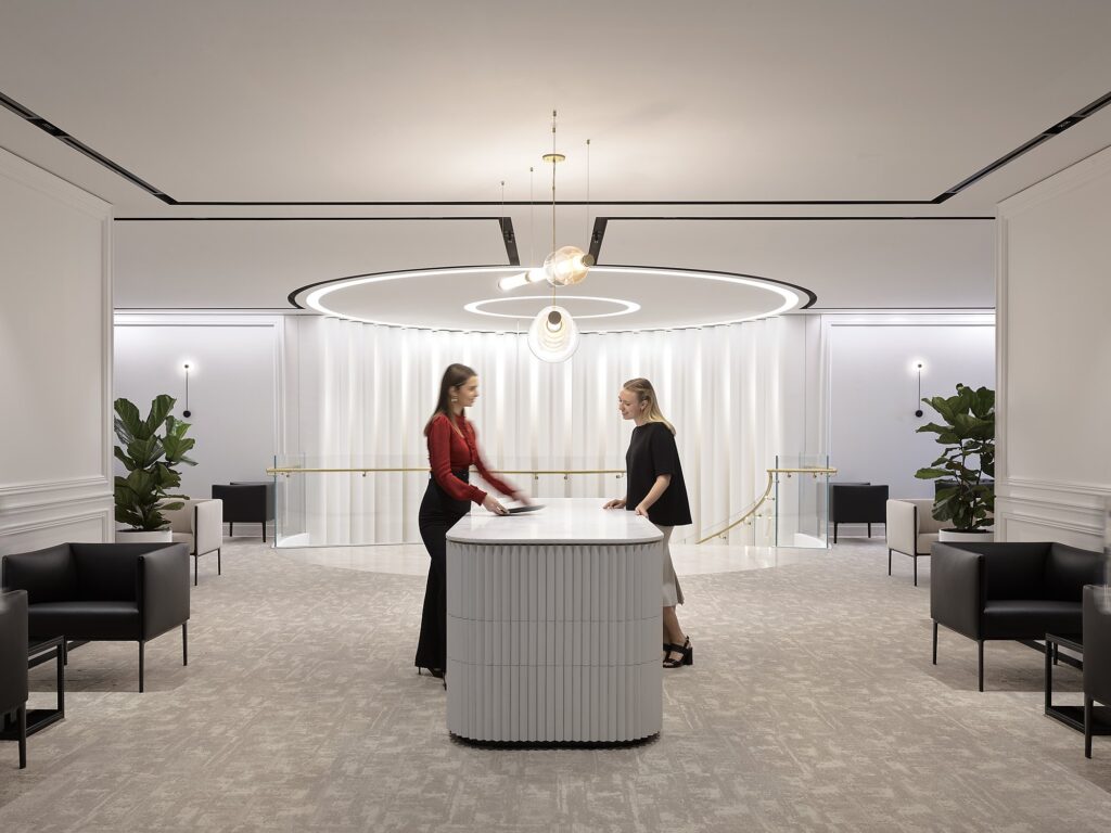 For Google, we lit a five-story office with diverse functional areas – entrance, gym, food court, focus rooms, and open offices – allowing for more eclecticism. Each area’s language is different, and we could incorporate playful elements, like using binary code in the positioning of ceiling light panels, a sort of hidden architectural Easter egg for the observant. Beyond Australian standards and minimum lighting values, the approach to workspaces has drastically changed in recent years. The extensive use of remote working and the current desire of companies to bring employees back to the office reflect in designing lighting solutions closer to domestic ones, making people feel comfortable. It’s not just technical fixtures. There are also more decorative floor or table lamps.